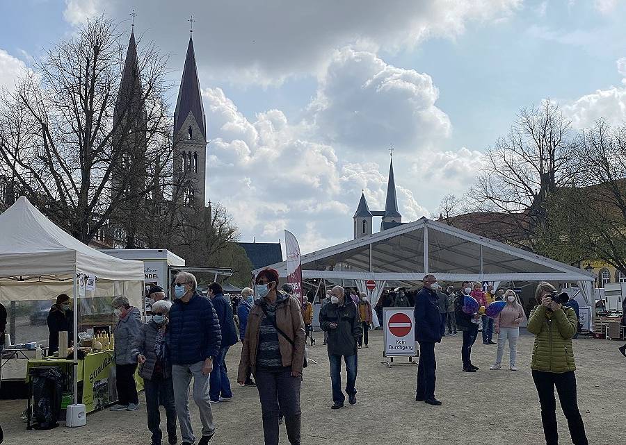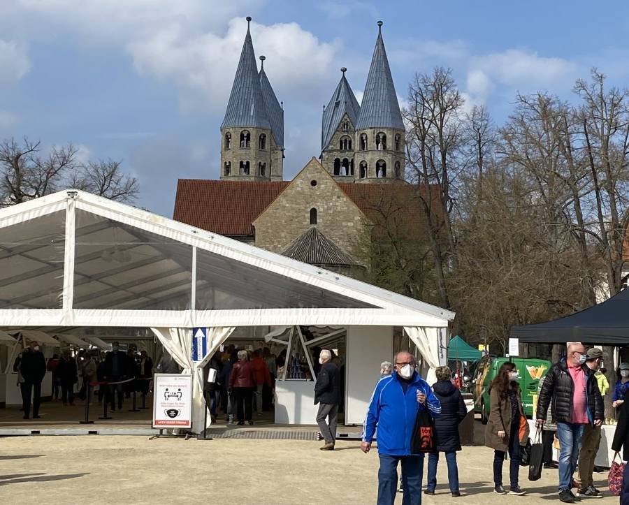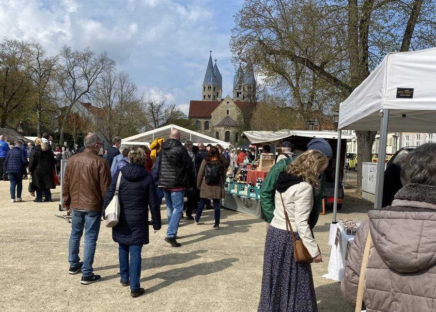 HomeAuf dem Domplatz in Halberstadt gab es am 1. Mai, die kleine Grüne Woche - der „Marktplatz Sachsen-Anhalt on Tour“. Von 10 bis 18 Uhr präsentierten sich mehr als 30 Anbieter regionaler Produkte „Made in Sachsen-Anhalt“. Über den Tag verteilt schlenderten zahlreiche Besucher*innen an den Ständen entlang und genossen das bunte Marktreiben.