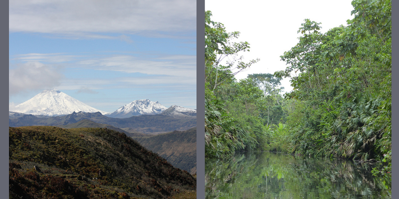 Ecuador erhielt seinen Namen vom Äquator, der das Land in eine nördliche und eine südliche Hälfte teilt. Für die Tier- und Pflanzenwelt spielt diese Linie allerdings keine Rolle. Ecuador ist ein Land voller verschiedener Landschaften und Lebensräume. Hierfür ist ganz wesentlich die mächtige Andenkette verantwortlich, die das Land in voller Länge von Norden bis Süden durchzieht und mit dem höchsten Berg, Chimborazo, fast 6300 Höhenmeter erreicht.