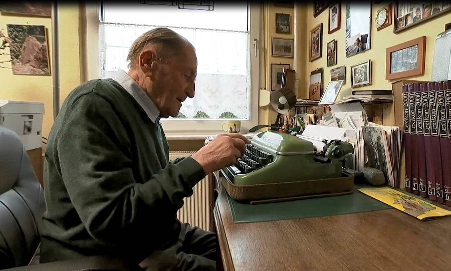 Sein Hauptarbeitsmittel ist Werner Hartmanns Schreibmaschine, die ihm heilig ist; auch heute noch sitzt er fast fünf Stunden täglich an ihr. Foto: Städtisches Museum Halberstadt