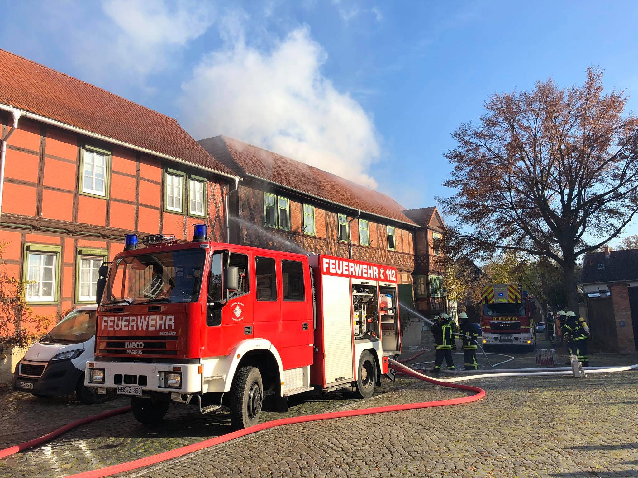 Foto 1: Am 14.11.2019 kam es im Ströbecker Schachmuseum zu einem Dachstuhlbrand