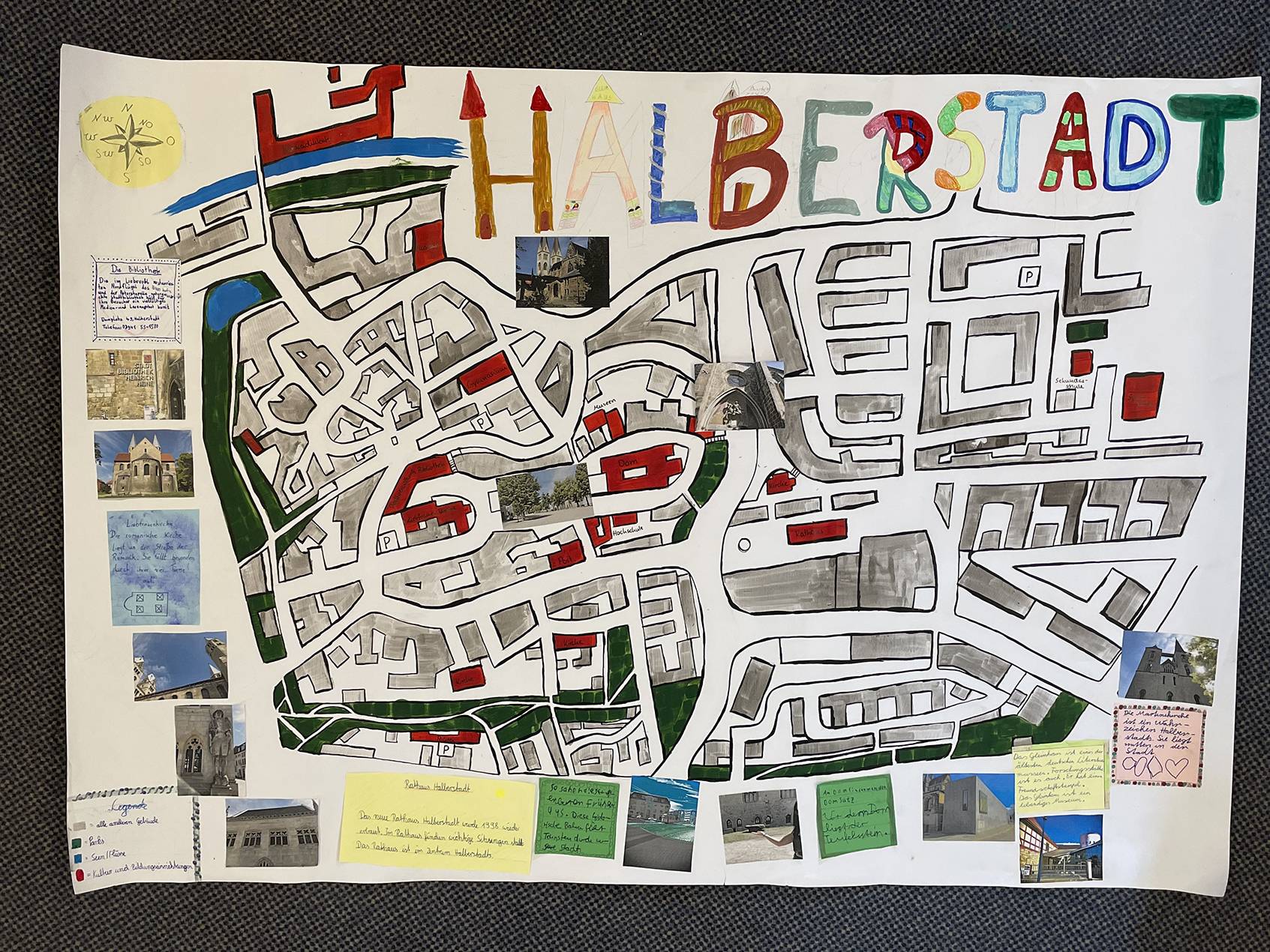 HomeDabei entstand zum Beispiel an vier Vormittagen erstmals ein cross-medialer Stadtplan mit allerlei digitalen und analogen Medien: 7 Kinder zwischen neun und 13 Jahren starteten mit einer Stadtführung durch Halberstadt, haben mit iPads Fotos von ihren Lieblingssehenswürdigkeiten gemacht, erstellten eine Tablet-Rallye für Actionbound und haben schließlich kurze Texte für Bookii-Stifte eingesprochen, ganz professionell mit Ansteck-Mikros aus der Bibliothek der Dinge. Der Stadtplan 2.0 wird mittlerweile in der Kinderbibliothek präsentiert und kann in den nächsten Wochen bestaunt und ausprobiert werden.