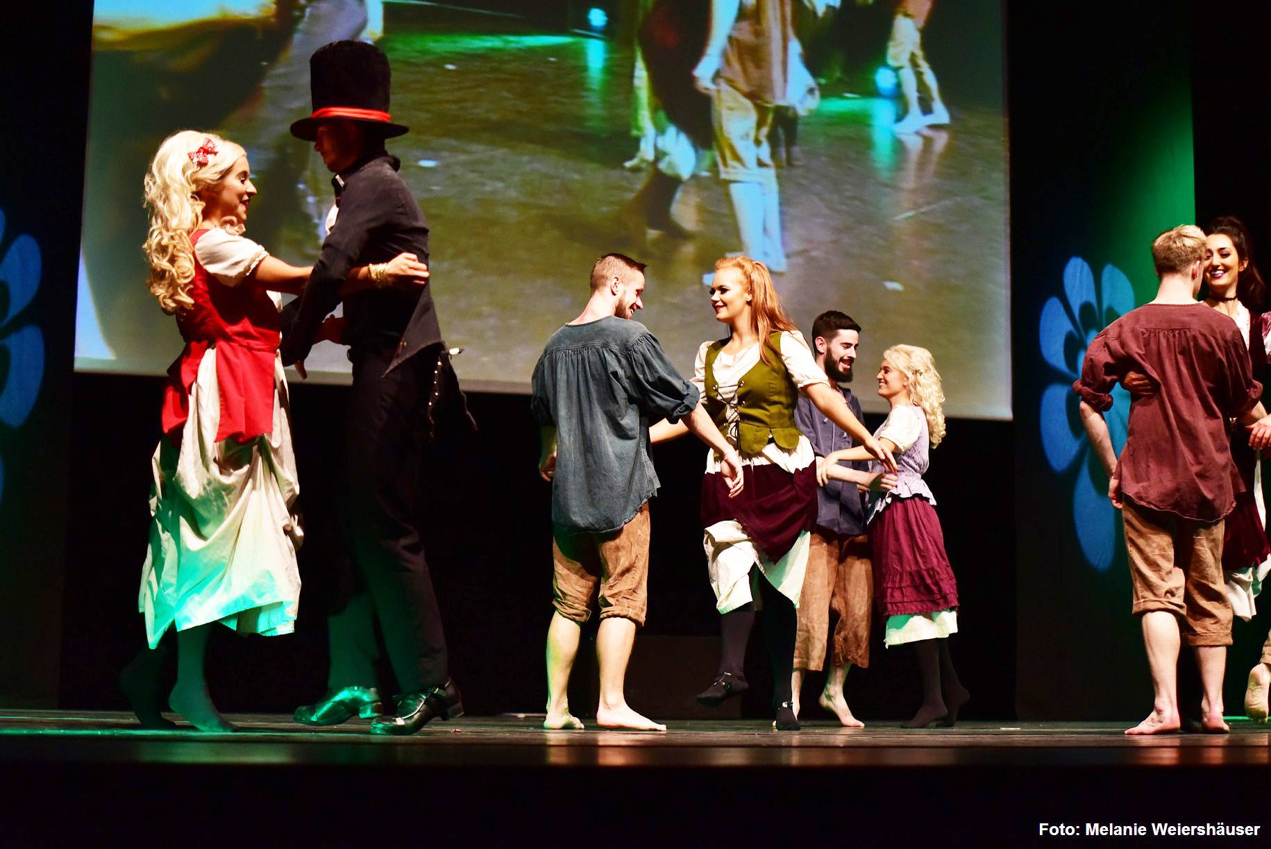 Damit auch die Zuschauer in den hinteren Reihen keinen Schritt verpassen, werden die Tänzer und Musiker zusätzlich auf der großen Video-Leinwand live übertragen.