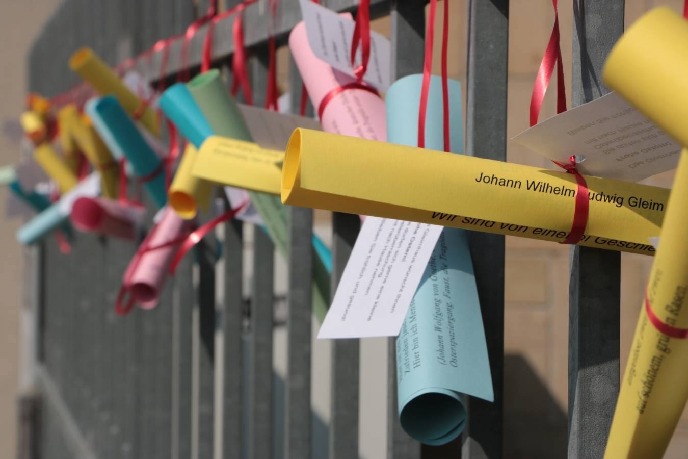 HomeAnknüpfend an die Idee, zu Ostern Texte am Zaun des Gleimhauses zu finden, kommuniziert das Gleimhaus zu Corona-Zeiten nicht nur digital, sondern auch analog und bietet den Halberstädter Bewohner/innen, egal ob jung oder alt, etwas zur geistigen Erbauung und evtl. Zeitvertreib an. Spazieren gehen ist ausdrücklich erlaubt! Warum also nicht regelmäßig dem Gleimhaus einen Besuch abstatten und schauen, was dort Neues am Zaun hängt.