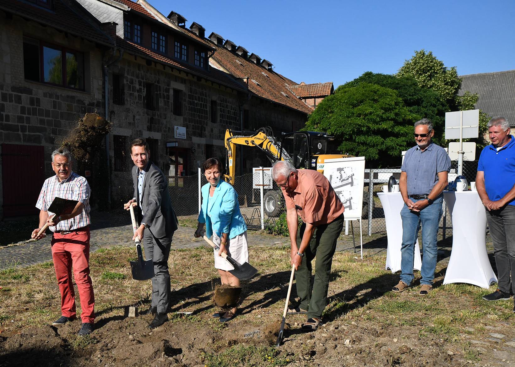 Foto: Stadt Halberstadt / Holger Wegener - Nahmen den Spatenstich für den neuen Hof vor: AWZ-Geschäftsführer Detlef Rutzen, Oberbürgermeister Daniel Szarata, AWZ-Geschäftsführerin Christiane Müller und Architekt Gerd Srocke