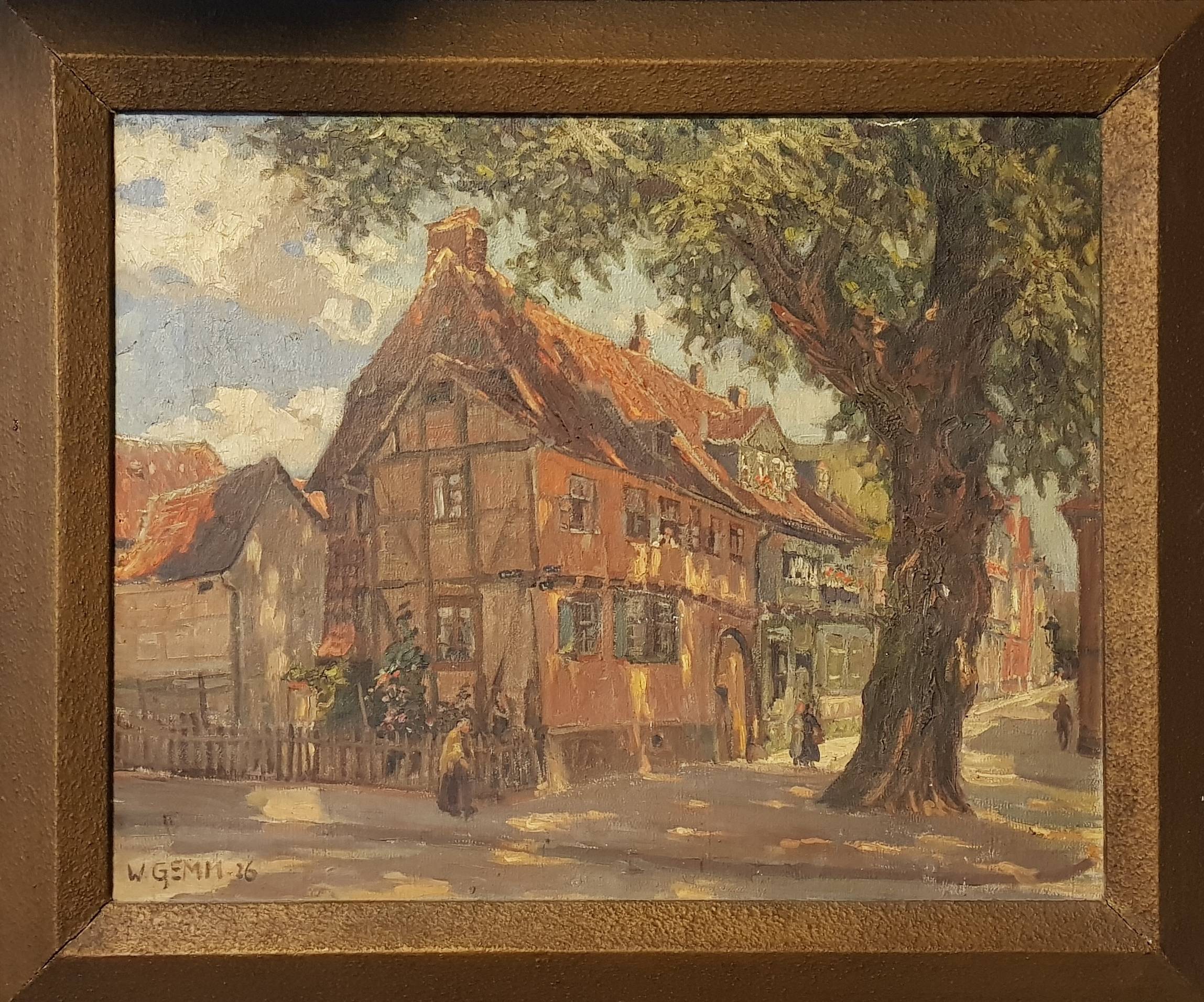 Die Stadt ehrte Dr. Fincke als Arzt und Stadtverordnetenvorsteher im Jahr 1908 durch die Verleihung des Ehrenbürgerrechts. Bereits 1900 erfolgte die Umbenennung der Neustädter Straße in Finckenstraße. Das Bild gehört zu den frühen Werken Gemms und konnte dank der finanziellen Unterstützung des Geschichtsvereins Halberstadt angekauft werden. Wahrscheinlich, so erzählt es die Vorbesitzerin, hat es Walter Gemm für einen befreundeten Oscherslebener Künstler, ihren Vater Otto Fricke, gemalt.