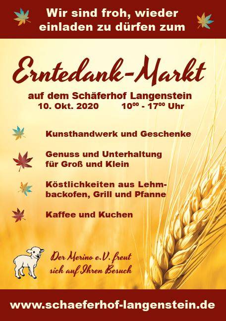 HomeDer Merino Verein freut sich seinen traditionellen Erntedank am Samstag, 10. Oktober 2020 von 10.00 – 17.00 Uhr ankündigen zu können.