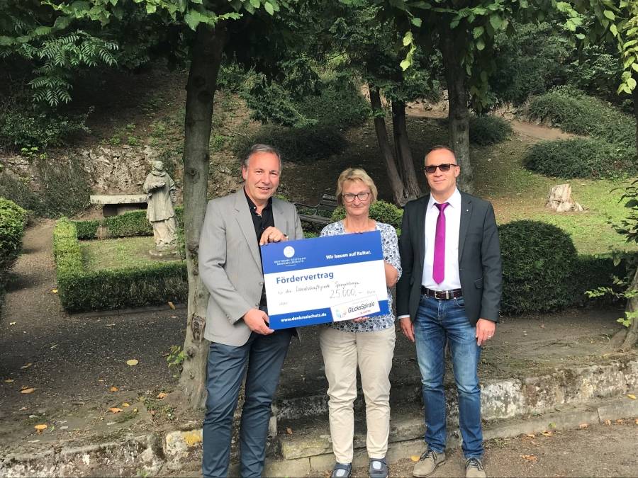 HomeRainer Mertesacker (Architekt Denkmalförderung) von der Deutschen Stiftung Denkmalschutz übergab am 8. September 2020 in den Halberstädter Spiegelsbergen einen Fördermittelscheck in Höhe von 25.000 Euro an Halberstadt Oberbürgermeister Andreas Henke. Die Förderung wird möglich durch die Erträge der treuhänderischen Stiftung „Unsere alten Gärten“ des Bonner Stifterehepaars Professor Dr. Thomas und Sabine Feyerabend in der Deutschen Stiftung Denkmalschutz (DSD) sowie die Erträge der Lotterie GlücksSpirale.