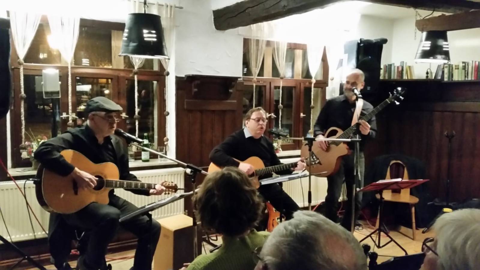 Im Februar kam dann die Band „Einmal im Monat“ ins Schachdorf. Deren Konzept zeugte von reinster Spielfreude und ging an diesem Abend voll auf. Das vorwiegend deutschsprachige Programm der drei Herren traf auf viel Freude am Zuhören und rief bei Vielen Erinnerungen wach. Mit Witz, Können und gelungenen Überleitungen ging es beschwingt durch den Abend – das Publikum dankte es!