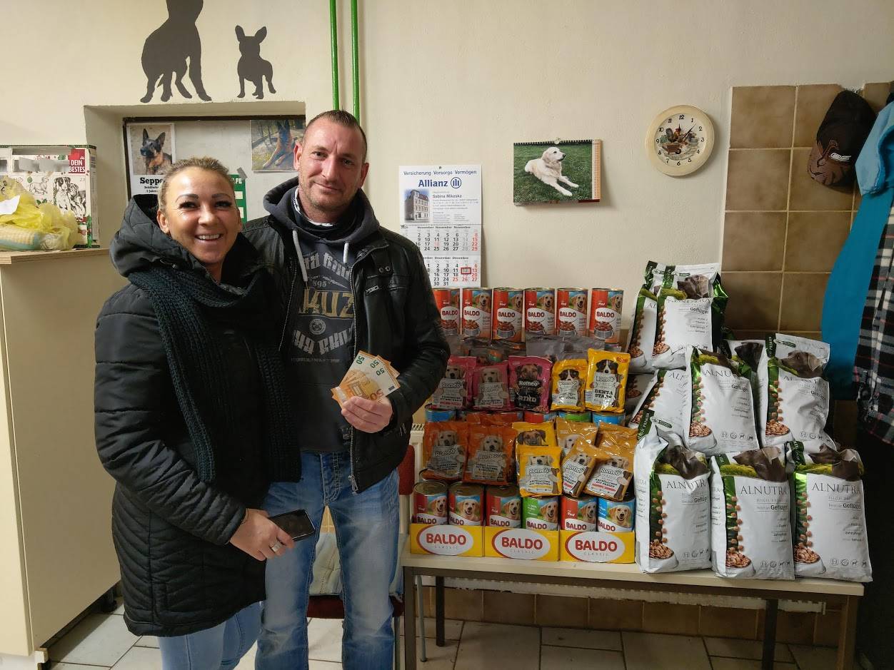 Sabrina Nitsche und Steffen Eiling unterstützen die Hunde in der Halberstädter Fundtierunterkunft mit einer großzügigen Sach- und Geldspende.