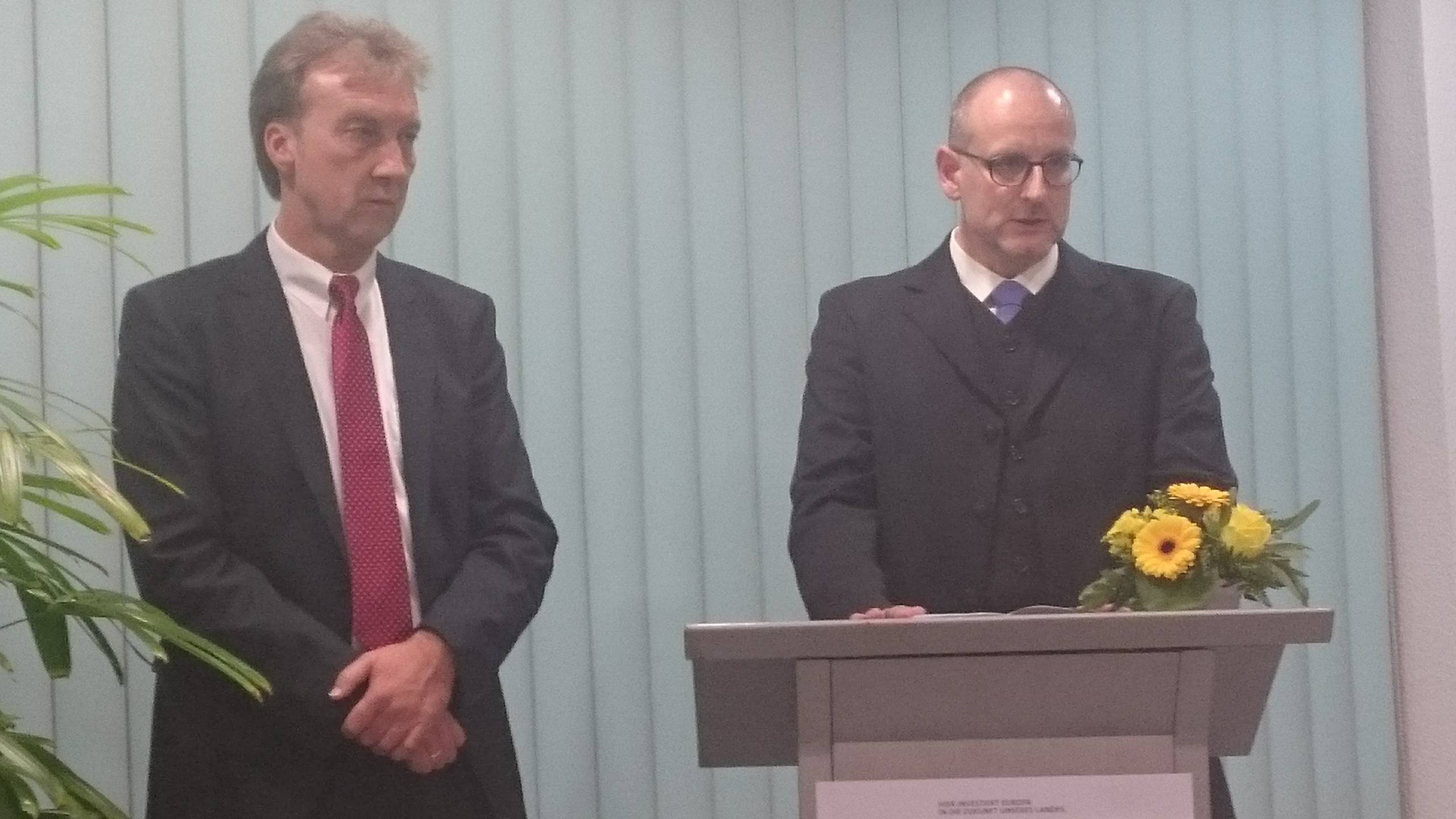 Die beiden Geschäftsführer von Nanostone Water GmbH in Halberstadt, Christian Göbbert (rechts) und Bernhard Bischof.
