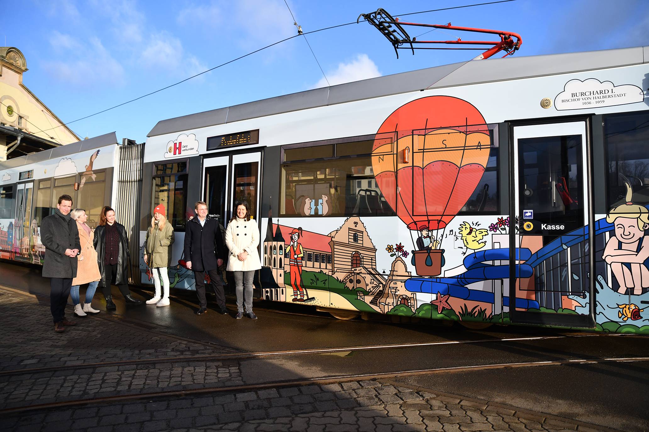 HomeBereits seit einigen Wochen erfreut die neugestaltete Halberstädter Straßenbahn mit dem großem Wimmelbild die Halberstädter und die Gäste der Stadt. Am Donnerstag gab es für die Verantwortlichen die Gelegenheit, die frisch gestaltete Halberstädter Straßenbahn ganz aus der Nähe zu bestaunen. Auf Einladung von Claudia Stein, Chefin der Halberstädter Verkehrs-GmbH, kamen Oberbürgermeister Daniel Szarata, Geschäftsführer Christian Mokosch und Melanie Kischel von der NOSA sowie Stadtmarketingleiterin Nancy Wesemeier in das Straßenbahndepot in der Gröperstraße.