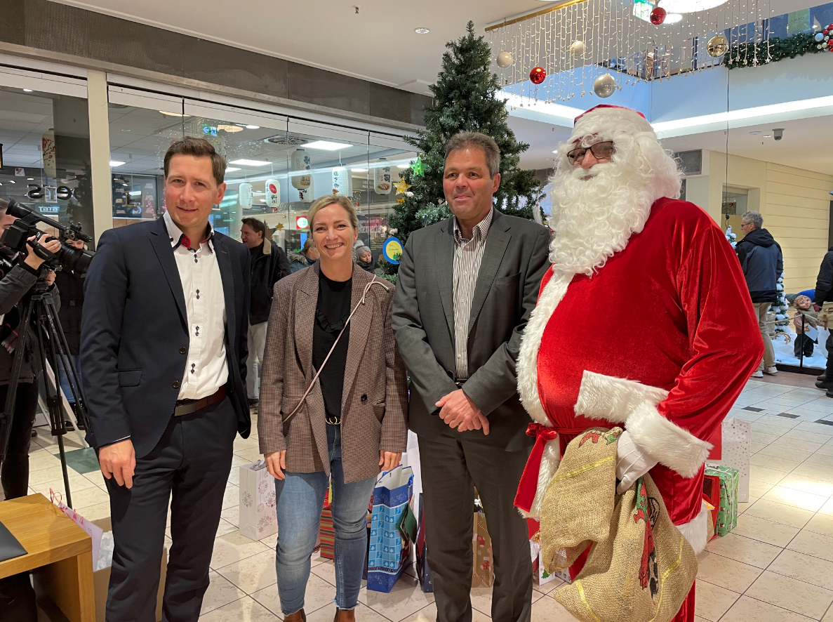 Oberbürgermeister Daniel Szarata, Centermanager Enrico Burau und Stadtmarketingleiterin Nancy Wesemeier bedankten sich ganz herzlich bei bei allen Wunscherfüllern und den Akteuren vor und hinter den Kulissen. Nachdem die Bescherungen in den vergangenen zwei Jahren coronabedingt nicht am Wunschweihnachtsbaum, sondern in den Einrichtungen stattfinden mussten, war nun endlich wieder eine öffentliche Bescherung am Baum möglich. Das ist nicht nur für die Kinder, sondern auch für die Wunscherfüller besonders schön, denn so sehen sie, wie ihre Hilfe direkt bei „ihrem“ Kind ankommt.