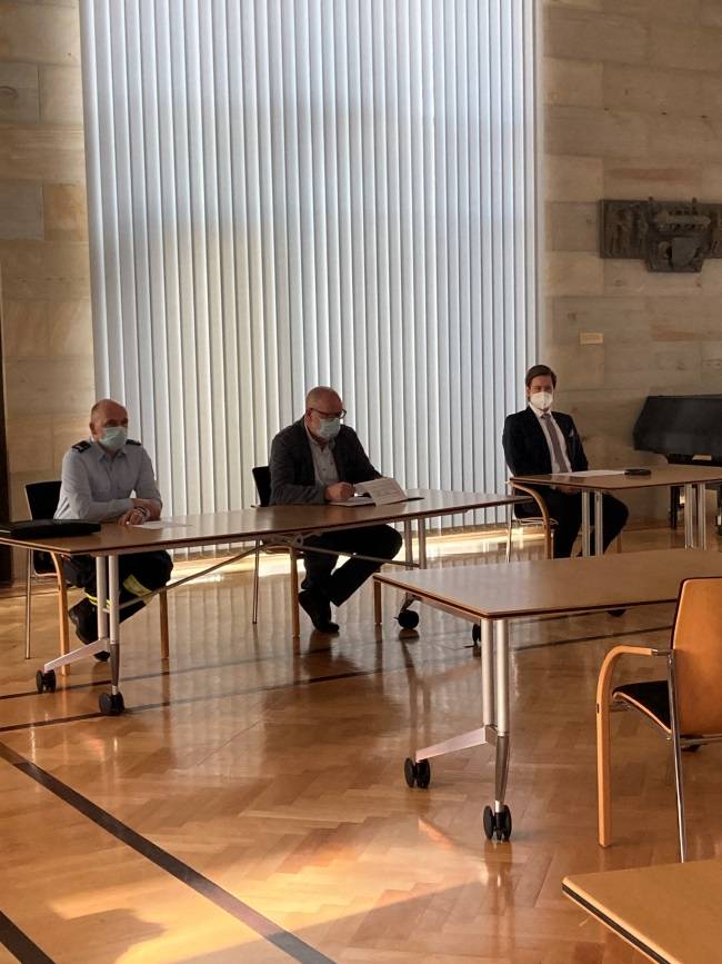 Oberbürgermeister Daniel Szarata hat die anwesenden Pressevertreter, Herrn Ralf Fleischhauer, Abteilungsleiter Ordnung und Sicherheit und Herrn Ingo Wetzel, Abteilungsleiter Feuerwehr begrüßt.