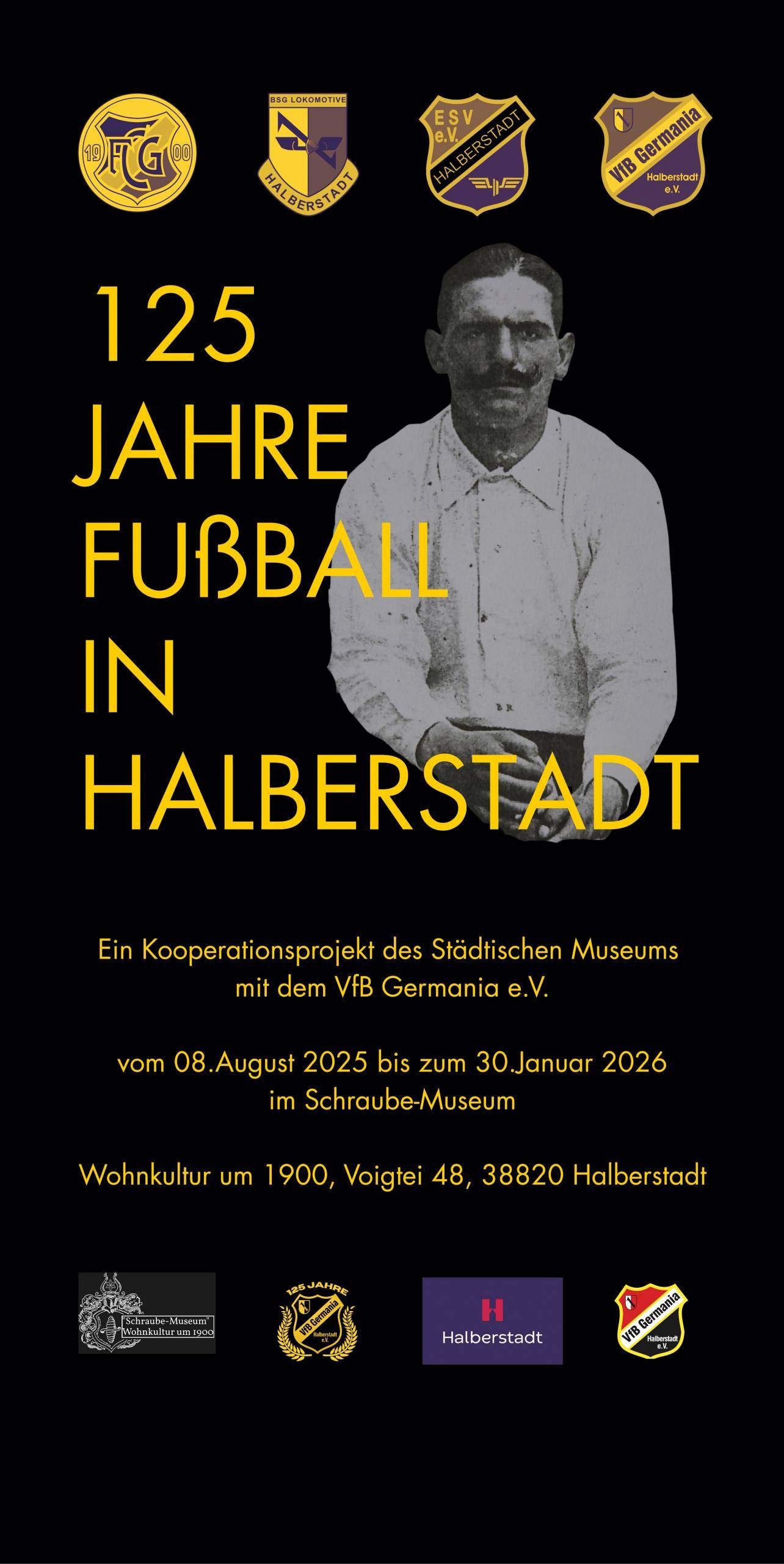Nachdem schon am Festwochenende im Friedensstadion am 25. und 26. Juli 2025 ein erster Einblick in die Ausstellung zu 125 Jahren Fußallgeschichte in Halberstadt möglich war, wird am 8. August 2025 um 18 Uhr im Erdgeschoss des Schraube-Museums eine umfangreiche Sonderausstellung eröffnet, welche dann bis zum 31. Januar 2026 dort zu sehen sein wird.