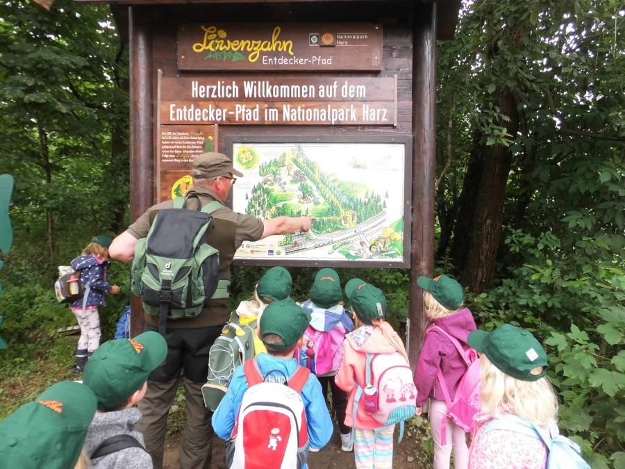 Foto: KITA Spatzennest: Ein Ranger des Nationalparks „Hochharz“ beantwortet die vielen Fragen der Kinder