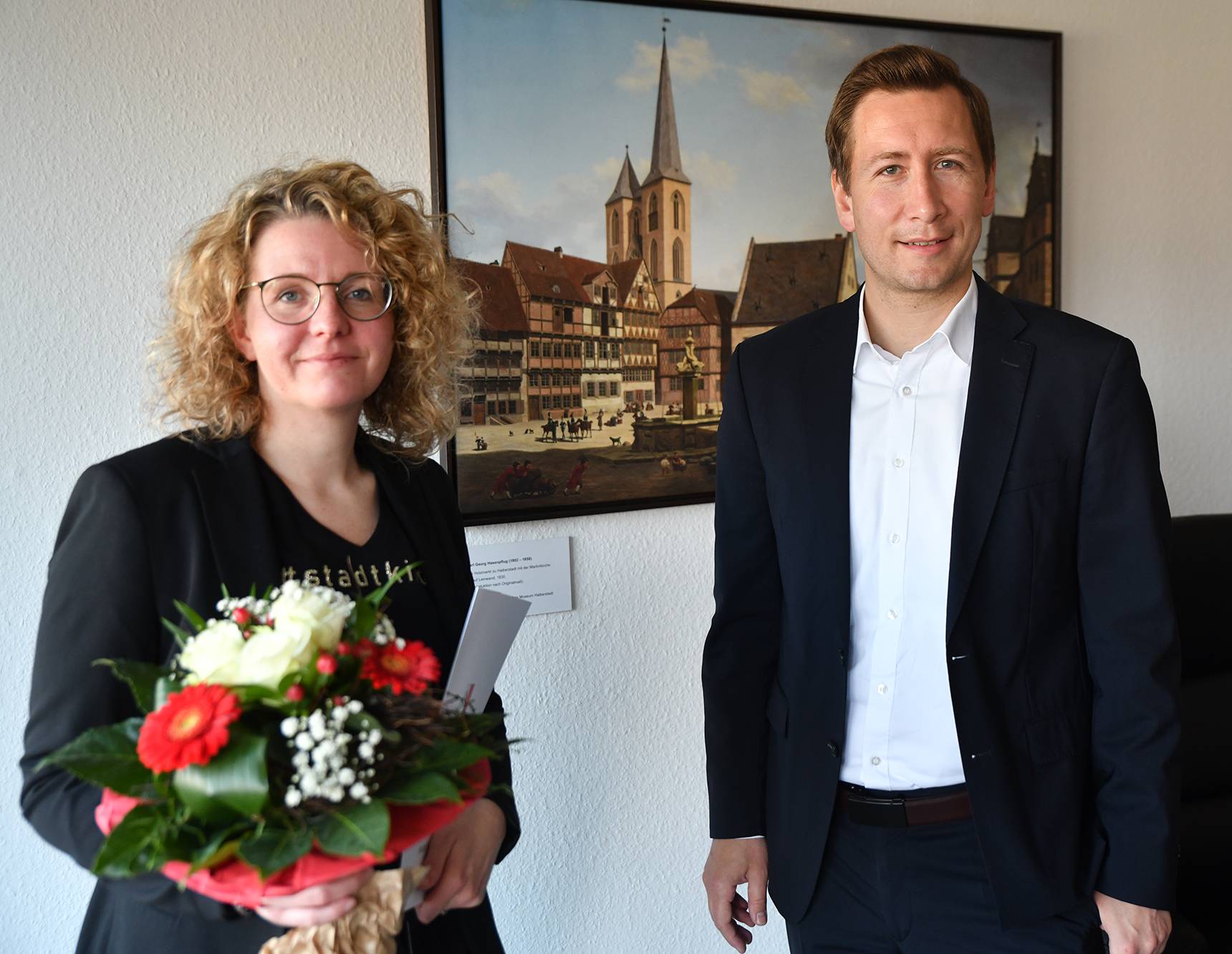 Er wünschte der neuen Beamtin der Stadt bei der Übergabe der Ernennungsurkunde alles Gute, Gesundheit und viel Erfolg bei ihrer weiteren beruflichen Laufbahn.