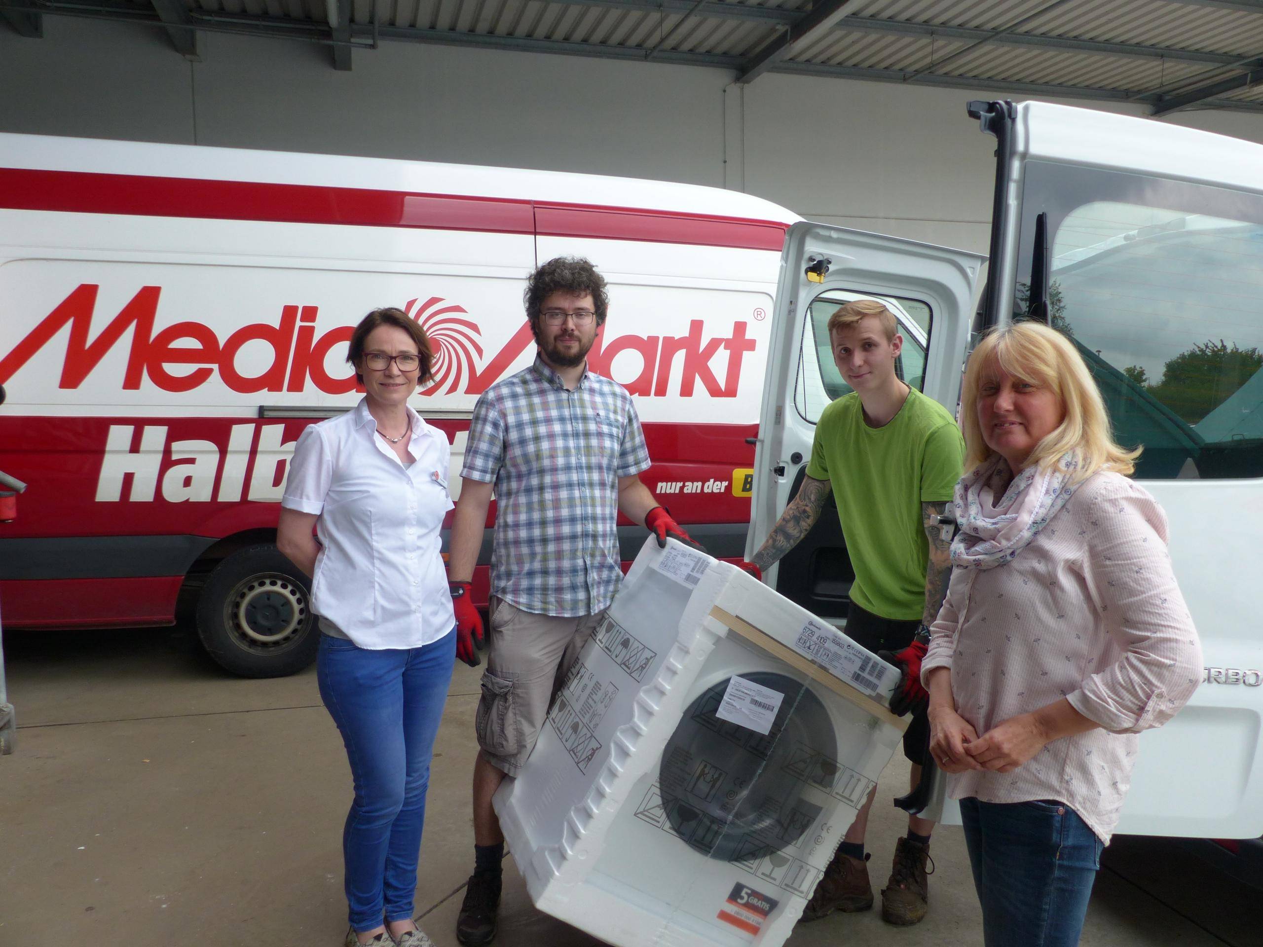 HomeEine Markenwaschmaschine im Wert von 299 Euro hat der Mediamarkt Halberstadt gestern (21. Mai 2019) an das Hundehaus im Tiergarten Halberstadt gespendet. Die Übergabe erfolgte direkt am Mediamarkt durch Anja Bors, Bereichsleiterin Weiße Ware. Die Idee, beim Mediamarkt anzufragen hatte Daniela Groß. Sie ist ehrenamtliche „Gassigängerin“ und betreut die Fundhunde im Tiergarten. „Die Hundedecken, die oft sehr schmutzig sind, werden zum Teil von den Mitarbeitern des Tiergartens selbst gewaschen oder bei extrem starker Verschmutzung weggeworfen“, berichtet Daniela Groß. Da sei ihr die Idee der Anschaffung einer Waschmaschine für diesen Zweck gekommen. Die Nachfrage beim Mediamarkt wurde sofort mit „Ja“ beantwortet. Das hat nicht nur sie, sondern auch den Tiergartenleiter David Neubert sowie Florian Hartmann, der für die Hunde zuständig ist, sehr gefreut.