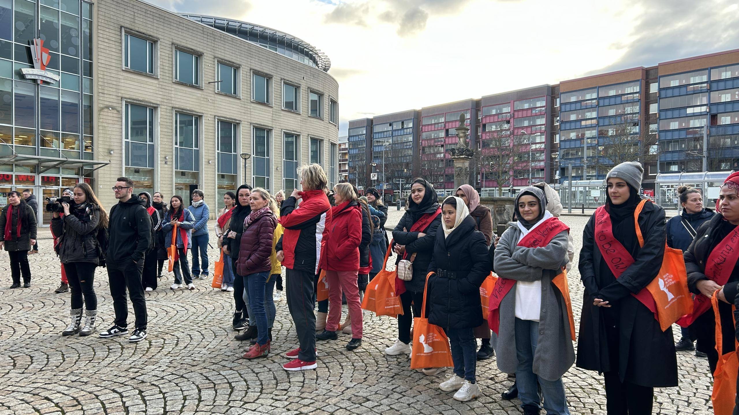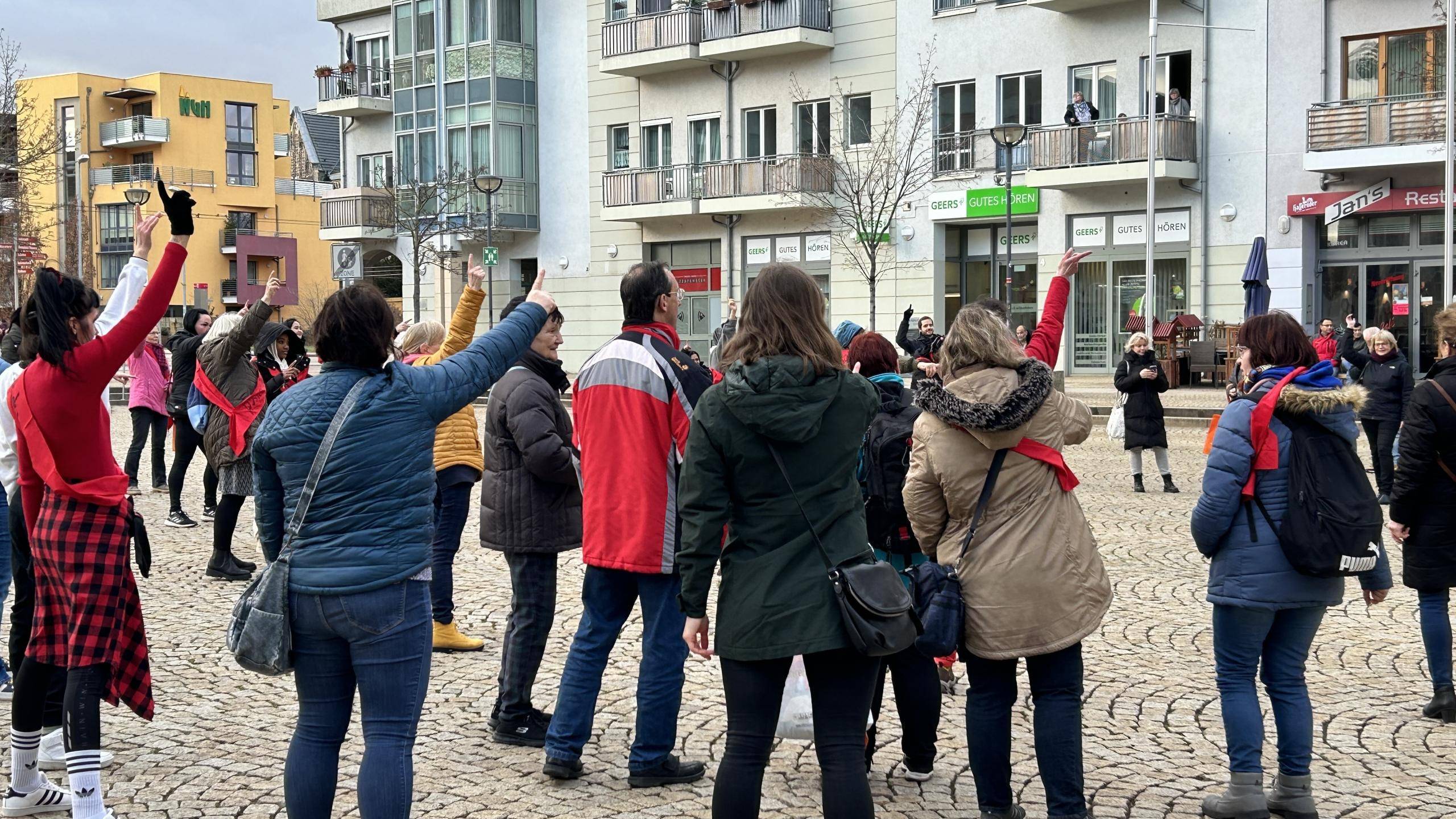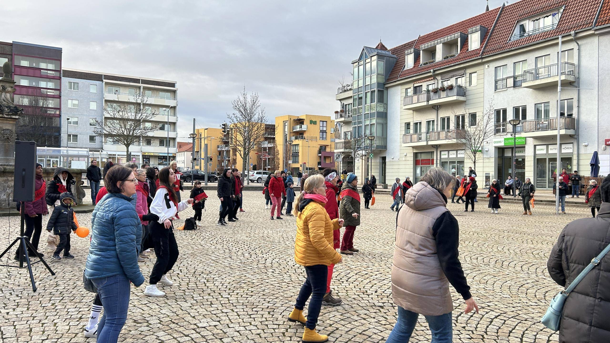 Halberstadt ist seit 2013 mit dabei. In den Anfangsjahren tanzten Frauen auf einem kleinen Platz vor dem ehemaligen Frauenzentrum in der Juri-Gagarin-Straße, seit vielen Jahren deutlich sichtbar mitten auf dem Holzmarkt. Frauen aus Deutschland, der Ukraine, Afghanistan, Kamerun und anderen Ländern tanzten unter Anleitung des Zumba-Trainerpaares Tino und Petra Sawall und demonstrierten so gemeinsam gegen Gewalt.