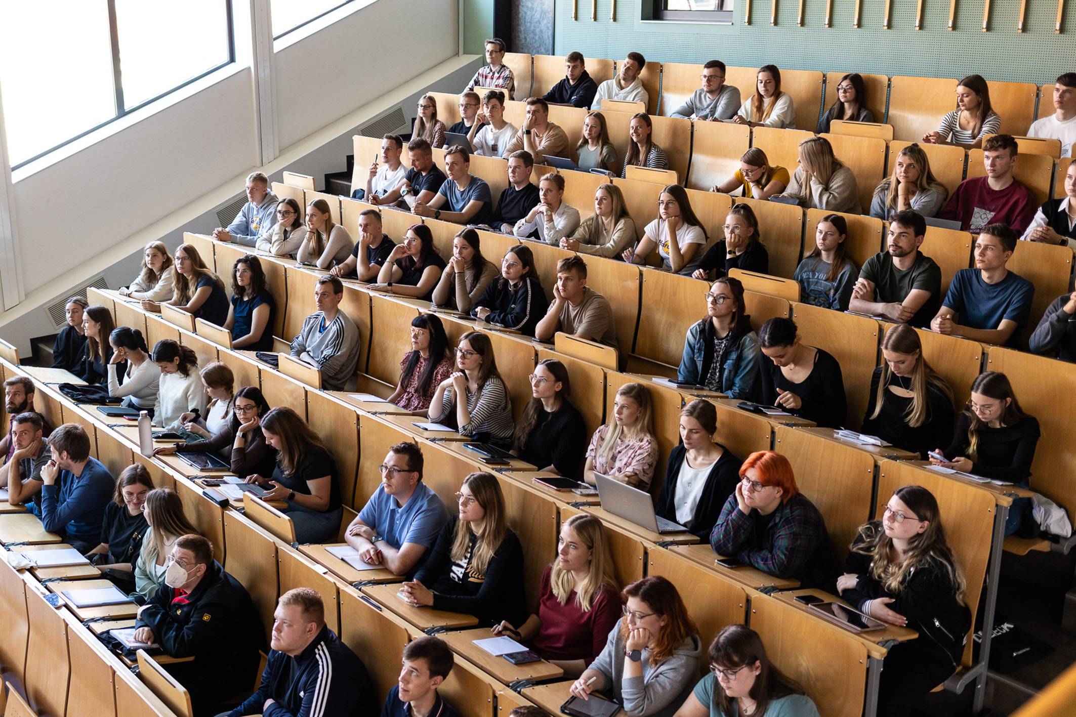 Bildtext 1: Im großen Hörsaal auf dem Halberstädter Campus fanden sich die angehenden Verwaltungswissenschaftler zusammen.