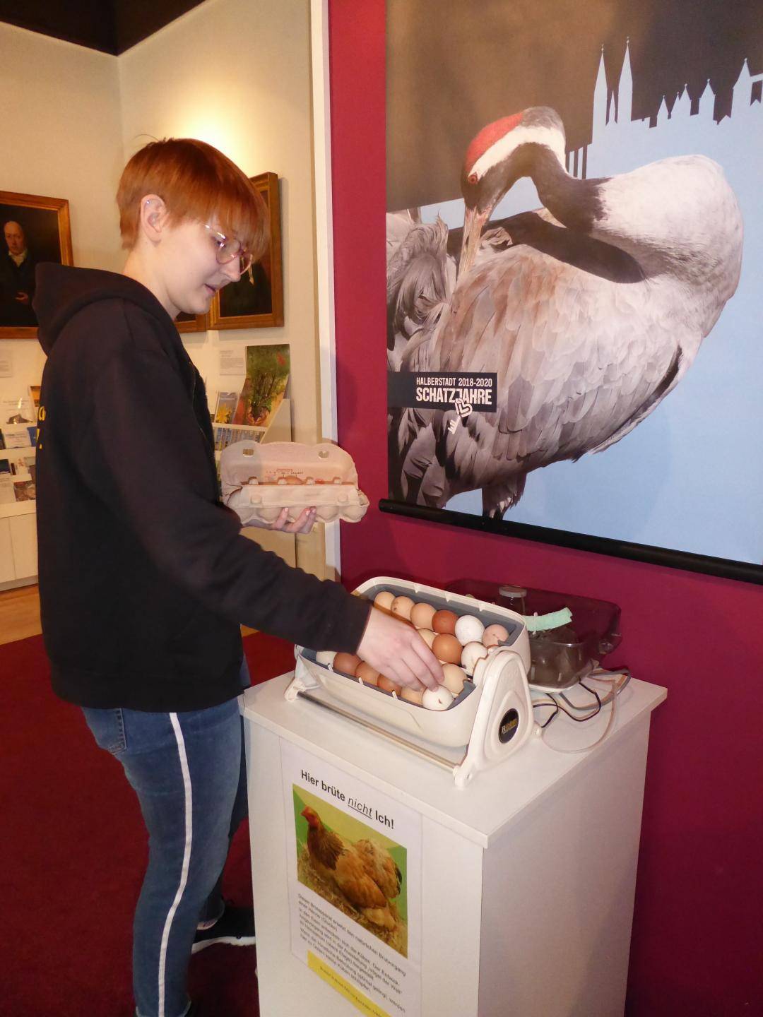 Vor wenigen Tagen wurden die Hühnereier dazu in einen Brutapparat eingelegt, den Besucher im Foyer des Städtischen Museums und des Museums Heineanum Halberstadt sehen können.