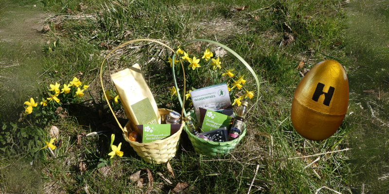 Das Kaffeekörbchen enthält den vollmundigen Domschatzkaffee, ein Glas Kaffee-Vanille-Zucker und schokoladige Frühlingsgrüße aus Halberstadt. Das Wanderkörbchen steigert die Vorfreude auf die sonnigen Jahreszeiten mit einem Wanderpass, Schokolade als Wegverpflegung, einem Notfall-Stempelkissen und zwei kleinen „Höhlentrunk" Schnäpsen für den steilen Anstieg. Diese exklusiven Geschenkkörbe sind in limitierter Auflage ab sofort in der Tourist Information Halberstadt für je 12,45 bzw. 15,95 Euro erhältlich.