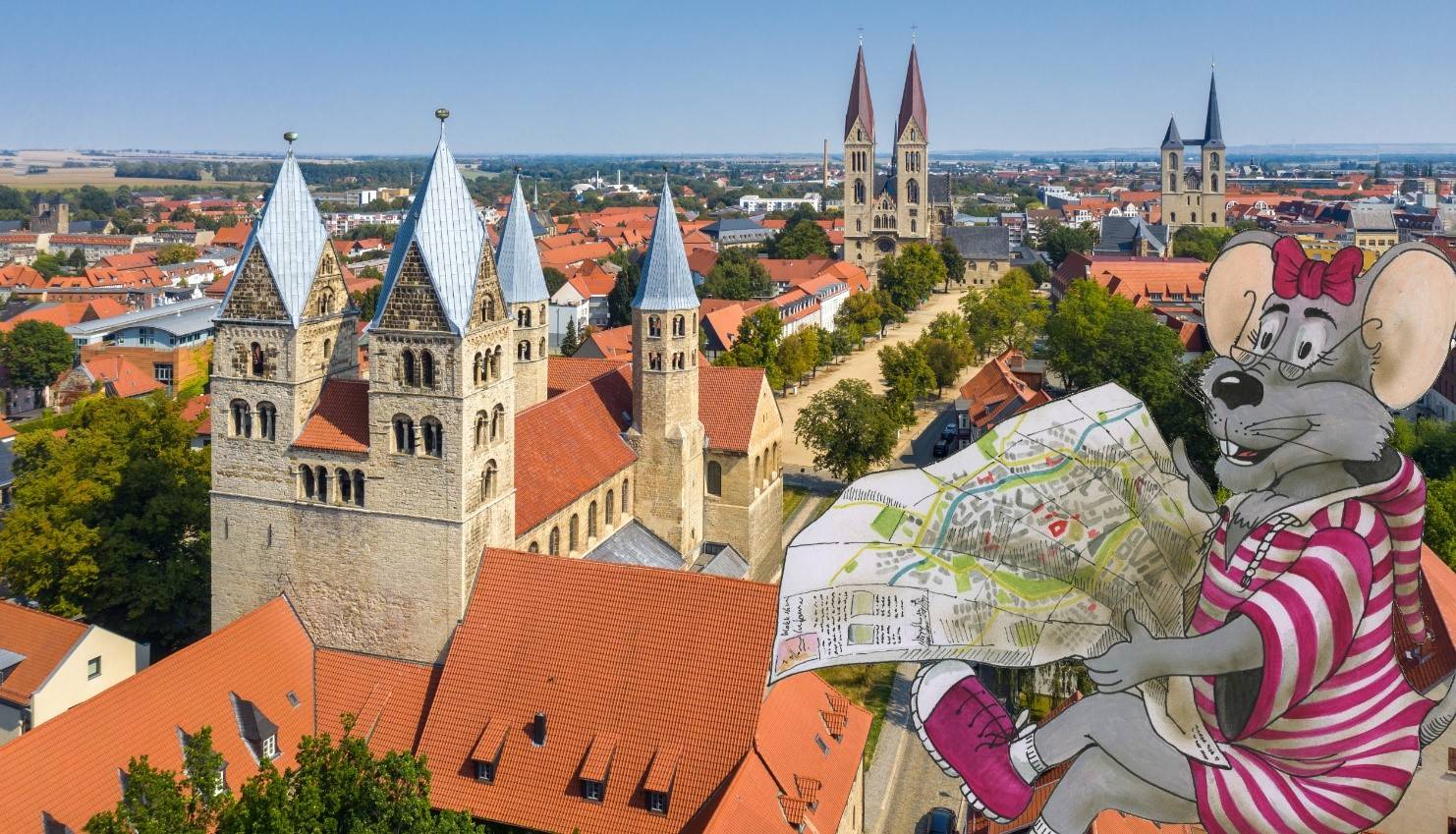 HomePünktlich zum Kindertag hält die Tourist Information Halberstadt eine ganz besondere Überraschung für Ihre kleinen Besucher bereit. Ein neuer digitaler Rundgang führt auf unterhaltsame und kindgerechte Weise zu den Sehenswürdigkeiten der ehemaligen Bischofsstadt. Die wackere Mausedame Kalotta Mausbart, die einige bereits aus dem Entdeckerpass kennen, begleitet die kleinen Entdecker auf der kurzweiligen Tour. Insgesamt acht Stationen erwarten das junge Publikum und lässt es in die wunderbare Welt der Halberstädter Sagen eintauchen. Unterwegs warten aufregende Aufgaben und Rätsel. Wer am Ende das richtige Lösungswort herausbekommt, kann sich in der Tourist Information zum Schluss eine kleine Überraschung abholen.