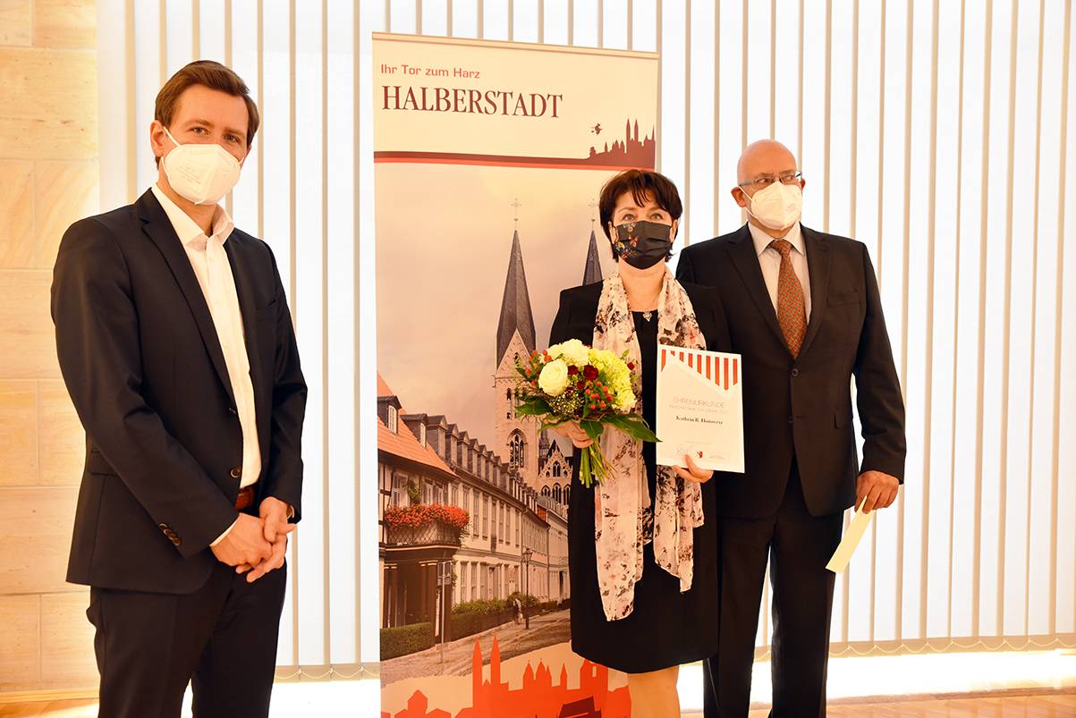 Im Rahmen einer kleinen Feierstunde im Ratssaal des Rathauses der Stadt Halberstadt zeichneten heute Oberbürgermeister Daniel Szarata und Kulturausschussvorsitzender Dieter Kühn in Anwesenheit von Stadtratspräsident Dr. Volker Bürger die „Persönlichkeit des Jahres“ und den „Verein des Jahres“ aus.