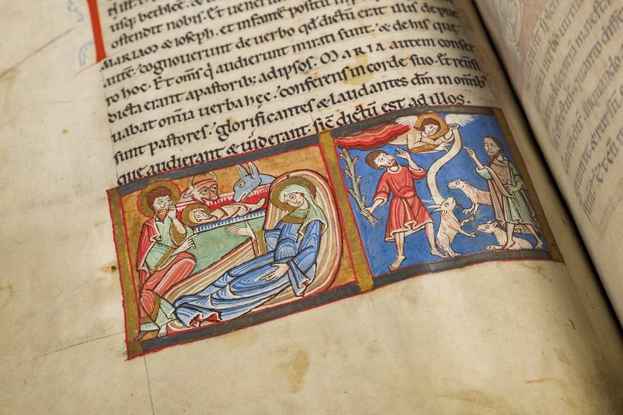 Höhepunkte der Sonderausstellung sind eine der ältesten sowie eine der kostbarsten Handschriften aus dem Halberstädter Bestand. Das sogenannte “Fuldaer Evangeliar” aus dem 9. Jahrhundert gehörte zur liturgischen Ausstattung aus der Gründungszeit des Halberstädter Bistums. Es entstand in der Fuldaer Schreibwerkstatt, die eine der bedeutendsten im Karolingerreich war. Daneben zeigt das “Marcwardus-Lektionar” aus dem 12. Jahrhundert kostbare farbige und vergoldete Malereien und Initialen, die von der Pracht der mittelalterlichen Buchkunst künden.