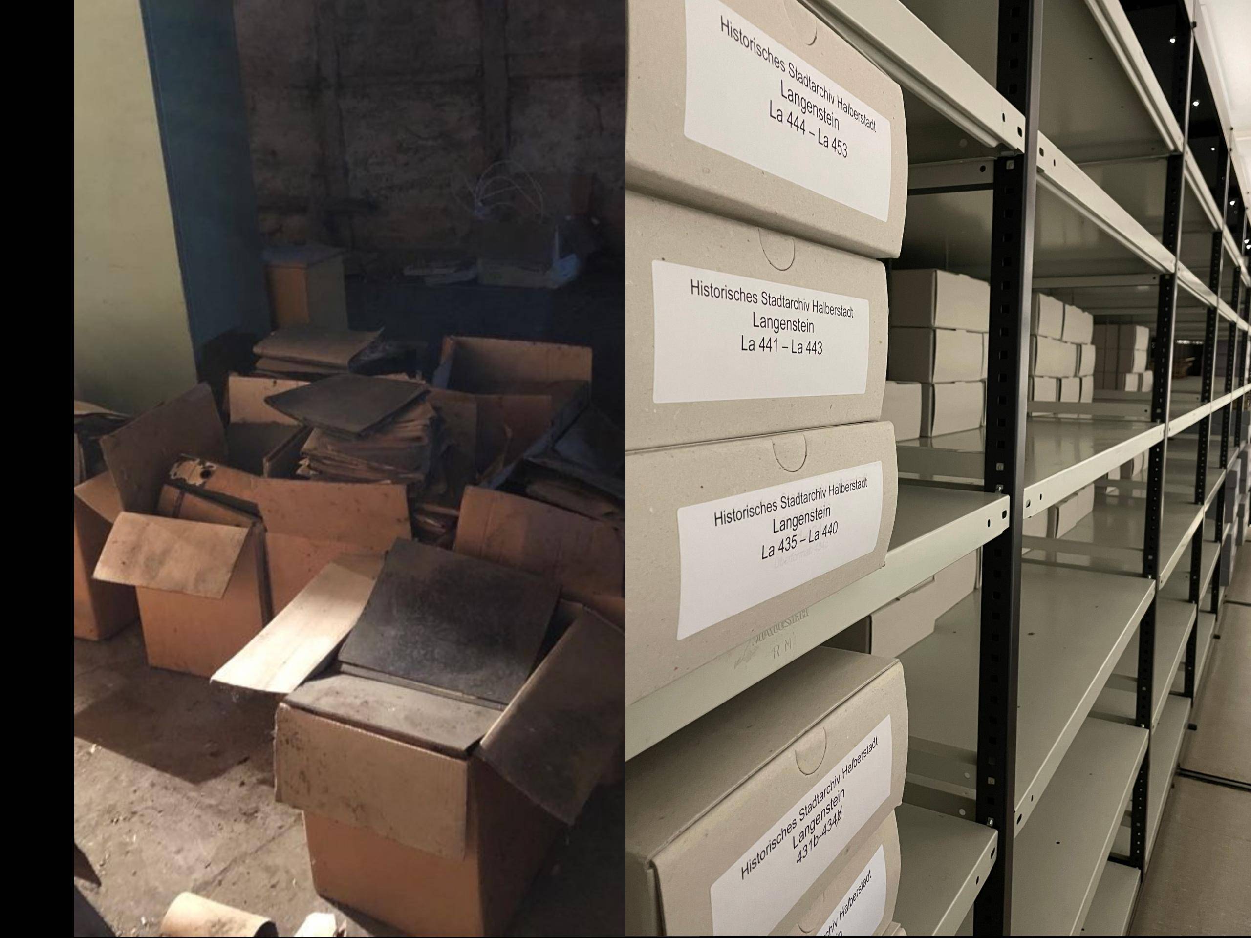 Bild: Stadtarchiv Akten in Langenstein und bereits verpackte Gemeindeakten Langenstein im Stadtarchiv