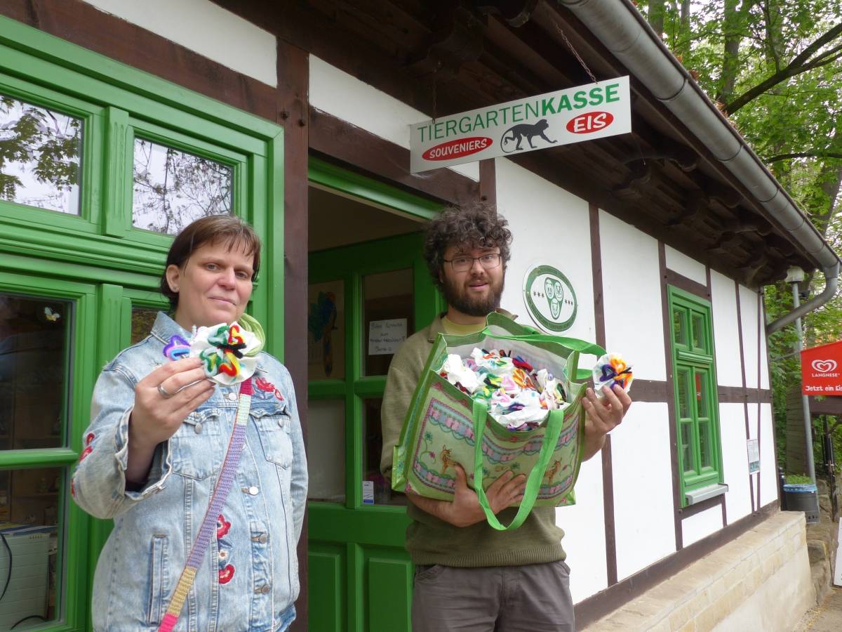 HomeJunge Tiergartenbesucher bekommen von sofort an bunte Papierschmetterlinge bei ihrem Besuch im Tiergarten Halberstadt. Die Idee dazu hatte Anja Schuchmann. Die Halberstädterin bastelt die bunten Falter engagiert und ehrenamtlich, um Kindern oder Senioren in Heimen eine Freude zu bereiten. 250 hatte sie bereits zum Anna-Mannsfeldheim gebracht. 310 solcher bunten Schmetterlinge überreichte Anja Schuchmann am Samstag (2. Mai 2020) an der Tiergartenleiter David Neubert, der sich sichtlich darüber freute. Die Schmetterlinge werden nun, solange der Vorrat reicht, von den Kassenkräften an die kleinen Tiergartenbesucher verteilt.