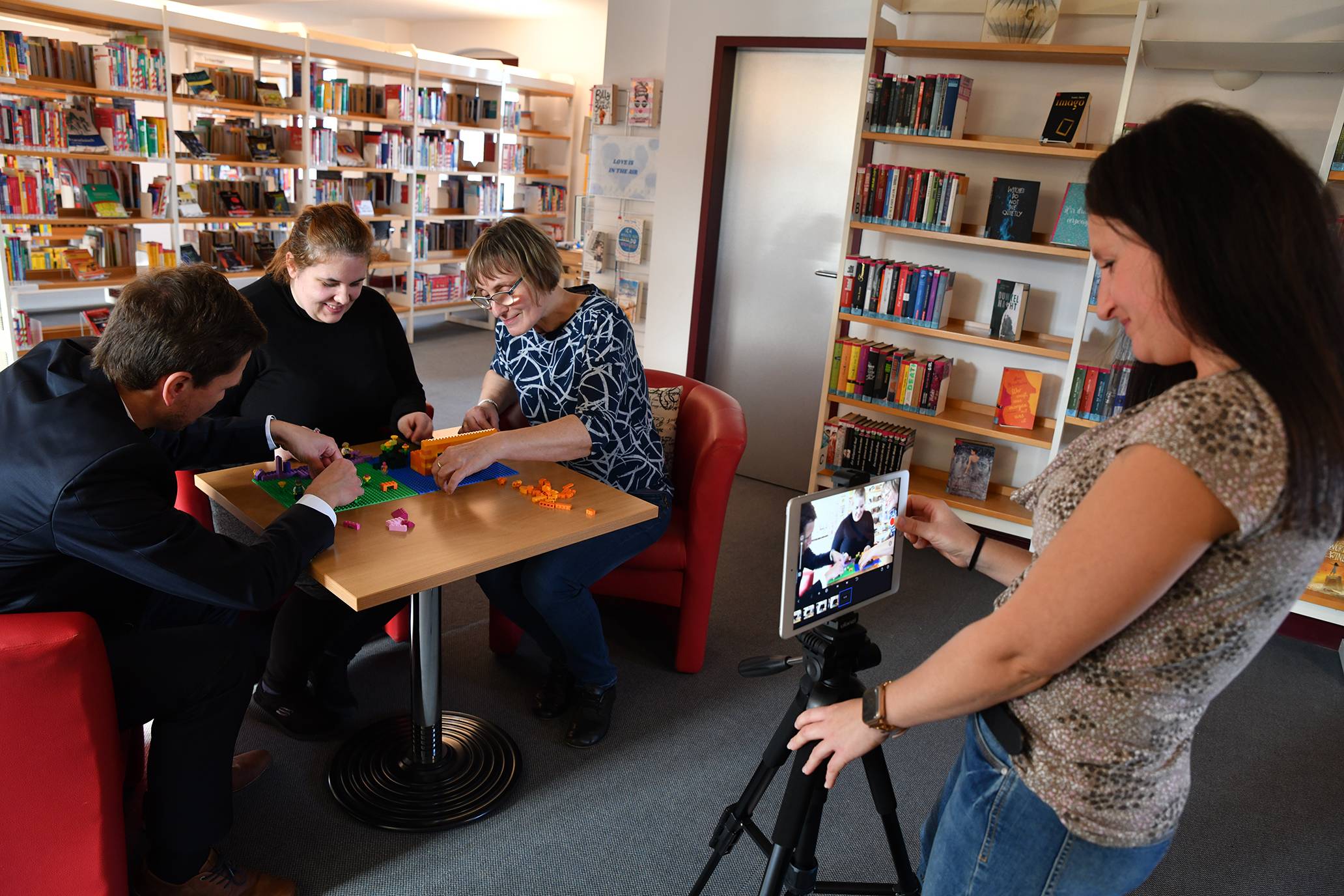 Halberstadts Oberbürgermeister Daniel Szarata nutzte die Gelegenheit, um sich von Birgit Sommer, der Leiterin der Stadtbibliothek, sowie den Mitarbeiterinnen Stefanie Hahn und Stefanie Franz die Werkstatt erklären zu lassen und sagte: „Die Nominierung ist eine große Ehre und Auszeichnung für die tolle Arbeit unserer Stadtbibliothek „Heinrich Heine“. Jetzt gilt es, die Daumen für die Entscheidung der Jury zu drücken.“