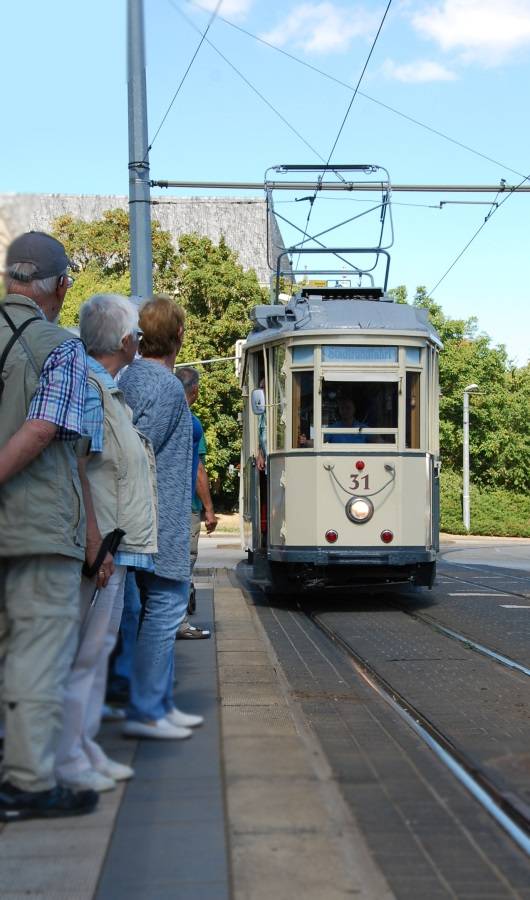 Am selben Tag kann unter fachkundiger Führung die 100-jährige Geschichte der elektrischen Straßenbahn in Halberstadt erlebt werden. Die Fahrt mit der historischen Straßenbahn im Tempo der 40er Jahre beginnt um 10 Uhr am Holzmarkt und führt Sie zu den Sehenswürdigkeiten Halberstadts.