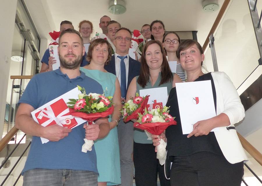 Aus der Personalabteilung war zu erfahren: „Die nunmehr Ausgebildeten haben viel Energie in ihre Ausbildung investiert und ihre Ausbildung letztlich mit guten Ergebnissen absolviert. Darüber hinaus haben Monika Schmitz, Ina Hilmer, Daniel Behrens und Daniel Huse während der Zeit ihrer Ausbildung für die Verwaltung und die Stadtbibliothek sehr oft wertvolle Hilfe geleistet.