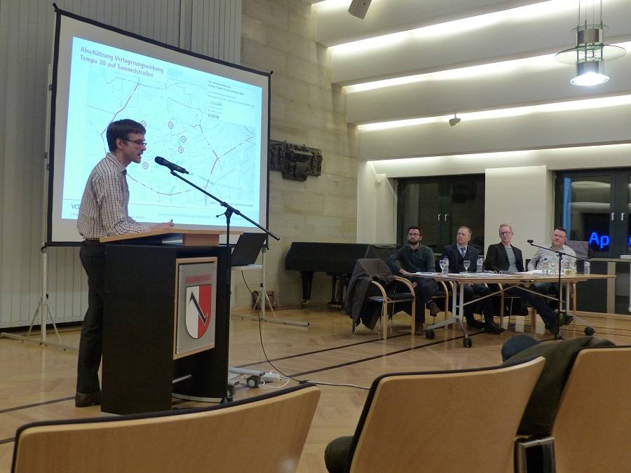 Christoph Bochmann, Projektleiter vom Ingenieurbüro Buschmann GmbH Magdeburg/Verkehrsconsult Dresden-Berlin GmbH (VCDB) stellt im Rathaus das neue Verkehrskonzept vor.