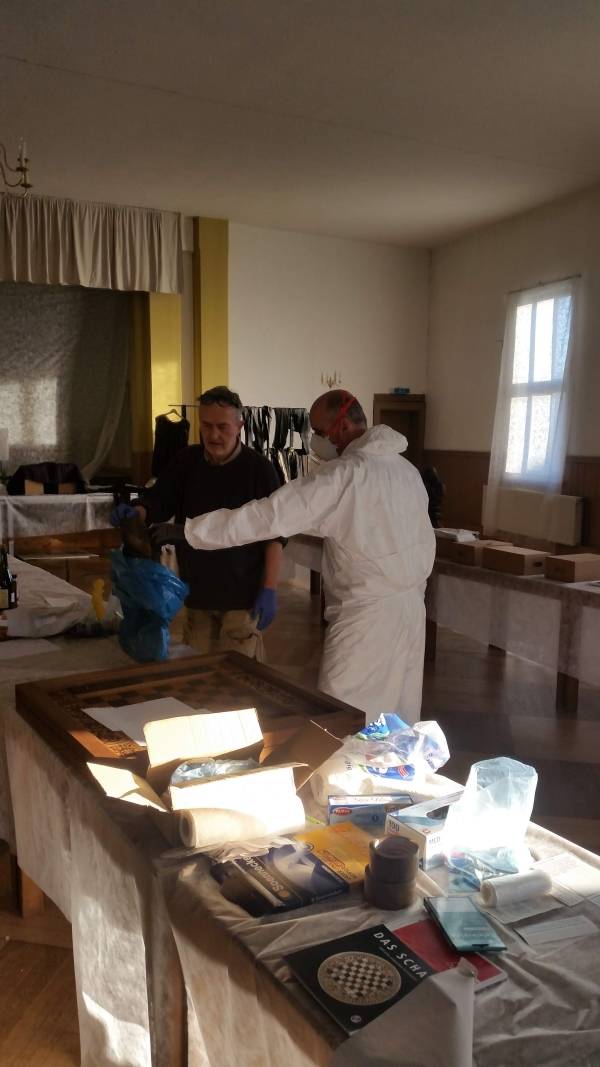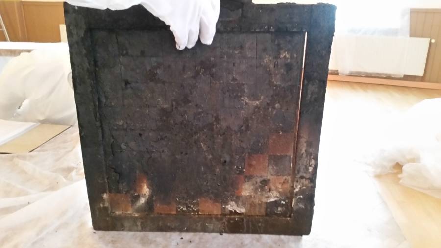 Nach den Aufräum-, Sicherungs- und Bergungsarbeiten kamen die Experten: die Versicherungen schickten ihre Kulturgutbeauftragten und Restauratoren erstellten Gutachten zum Umfang der Schäden. Mittlerweile ist das ehemalige Museumsgebäude komplett geräumt, alle Exponate der wertvollen Sammlung sind von Ruß und Schadstoffen gereinigt und mit der Einrichtung in einem Zwischendepot sicher ausgelagert. Erste Restaurierungen konnten in Auftrag gegeben werden und vollendet werden, darunter das wertvolle Kurfürstenschachbrett aus dem Jahr 1651.