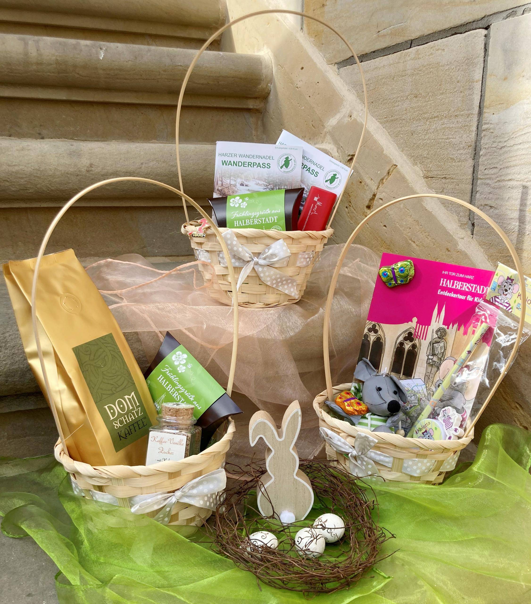 HomeDas Eiersuchen ist nicht nur für viele Kinder ein Highlight im Frühling. Deshalb haben die Mitarbeiter der Tourist Information Halberstadt drei kleine Osterkörbchen mit dem gewissen Halberstadt-Pfiff kreiert und bieten sie als fertige Geschenkideen an. Denn schließlich steht Ostern für das Leben und das sollte mit schönen Ostergeschenken gefeiert werden.