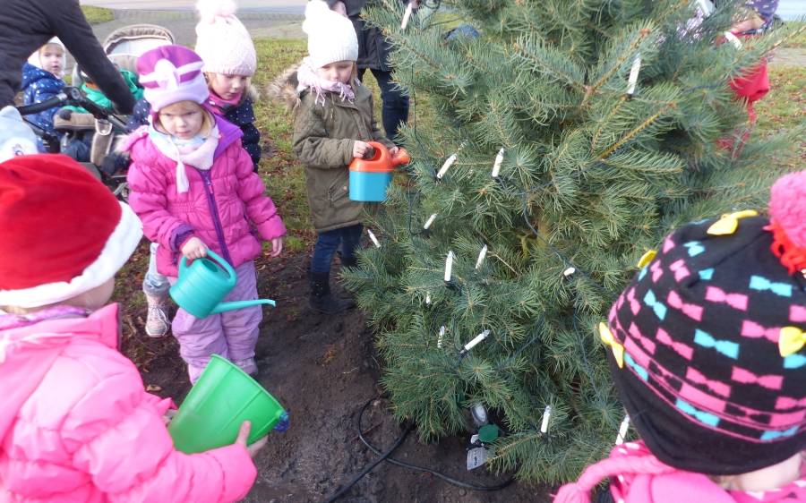 HomeVor dem Kindergarten Aspenstedt wurde am Dienstag, 10. Dezember 2019, ein Weihnachtsbäumchen gepflanzt. Es handelt sich um eine Ersatzpflanzung für einen gefällten Baum, den der Kindergarten sich gewünscht hatte. Die Kinder haben die Tanne mit viel Freude gegossen. Herr Rüdiger Müller, Ortsbürgermeister Aspenstedt, nahm den Kindern das Versprechen ab, die kleine Colorado-Tanne regelmäßig zu gießen. Herr Markus Lohmann, Mitarbeiter Stadtgrün, erklärte warum er sich für die Pflanzung einer Colorado – Tanne entschieden hat. „Diese Tanne kommt mit unserer Trockenheit besser klar.“ Die Tanne wird bis zu 20 Meter hoch werden.
