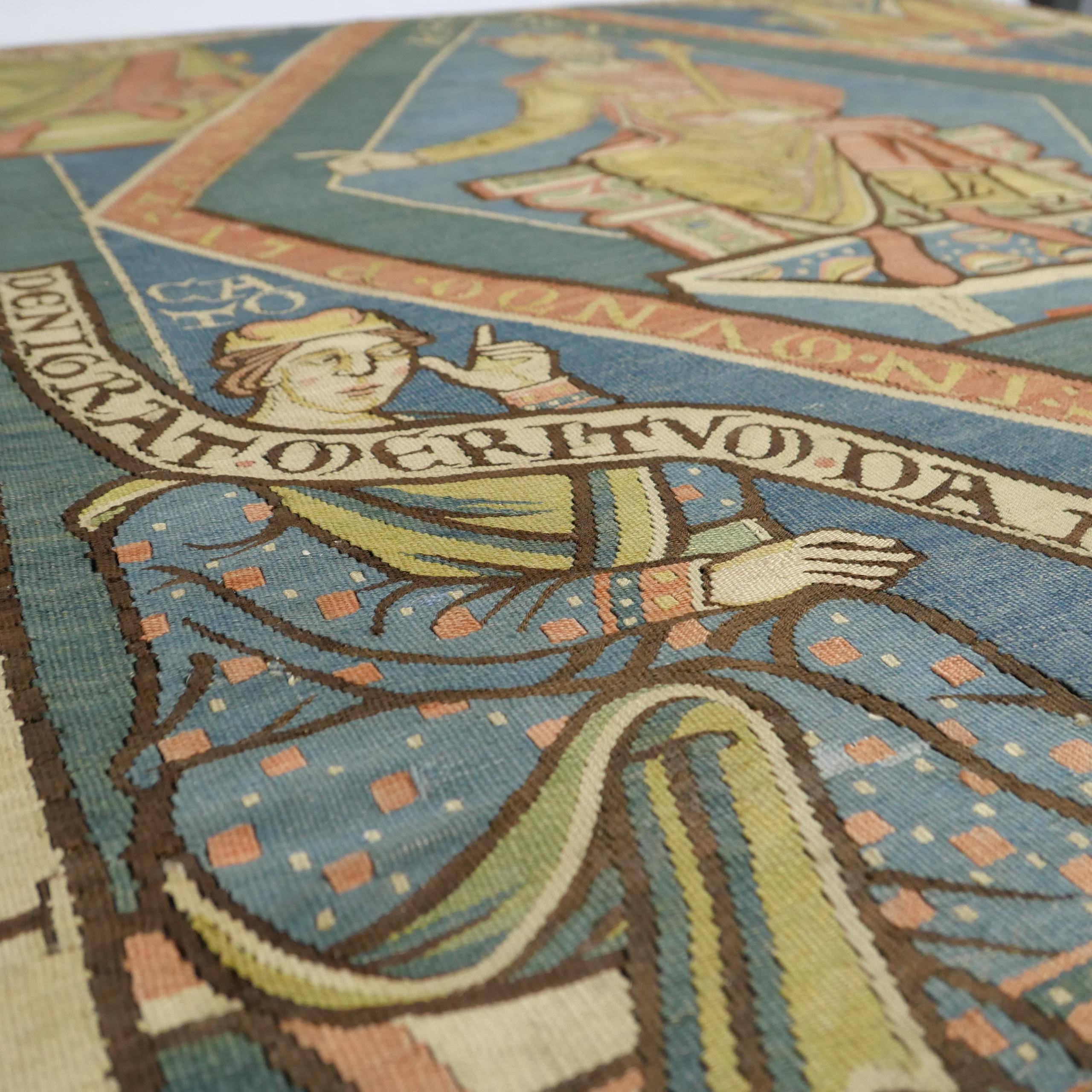 Der Karlsteppich aus dem 13. Jahrhundert gehört zu den Halberstädter Kunstwerken von Weltrang. Er präsentiert die irdische Herrscherpersönlichkeit Karls des Großen. Über Jahrhunderte wurde der Kaiser als legendärer Gründer des Bistums und später auch als Heiliger verehrt, er findet sich hier auf zahlreichen Darstellungen. Der gewirkte Teppich zeigt ihn als weisen Herrscher, umringt von römischen Schriftstellern und Philosophen. Umlaufende Inschriften betonen die Tugenden der Freundschaft und der Freigiebigkeit, auf dieser Grundlage schreibt die Inschriftenforschung den Teppich einer christlichen Bruderschaft unter den Halberstädter Geistlichen zu.