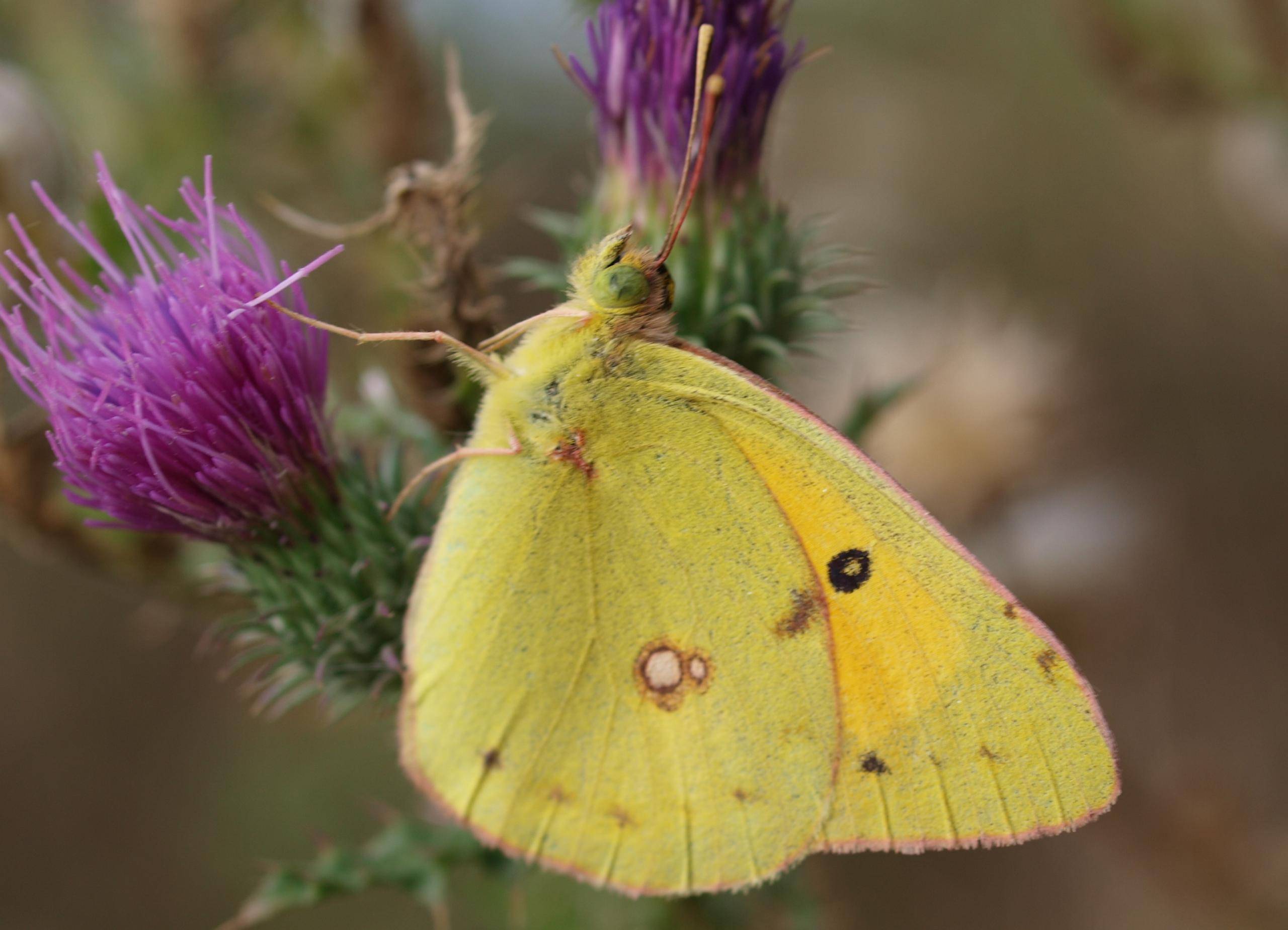 Bild 2: Der Postillion (Colias crocea) ein Wander-Gelbling in Luzernefeldern des sonnigen Harzvorlandes.