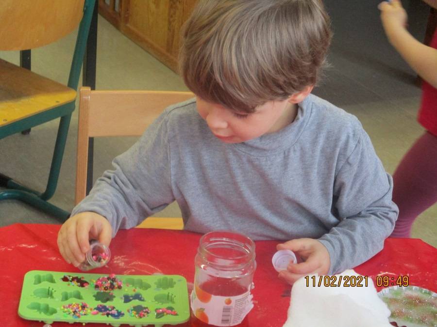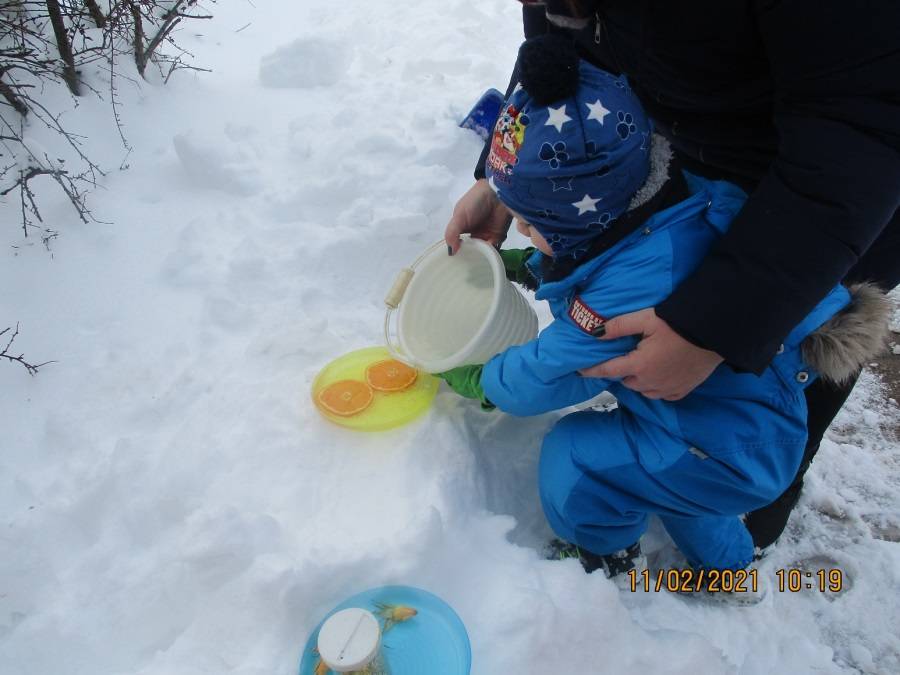 „Sonnenschein“ in Ströbeck. Die weiße Pracht der letzten Tage bot viele Ideen zum Experimentieren. Schneekunst entstand mit einfachen Wasserfarben und Pinseln. Außerdem haben die Kinder die frostigen Temperaturen genutzt, um schöne Eisbilder mit Glitzer, Orangenscheiben, Farbe und Naturmaterialien entstehen zu lassen. Alle waren beim Herstellen mit Feuereifer dabei und von den Ergebnissen sichtlich begeistert.