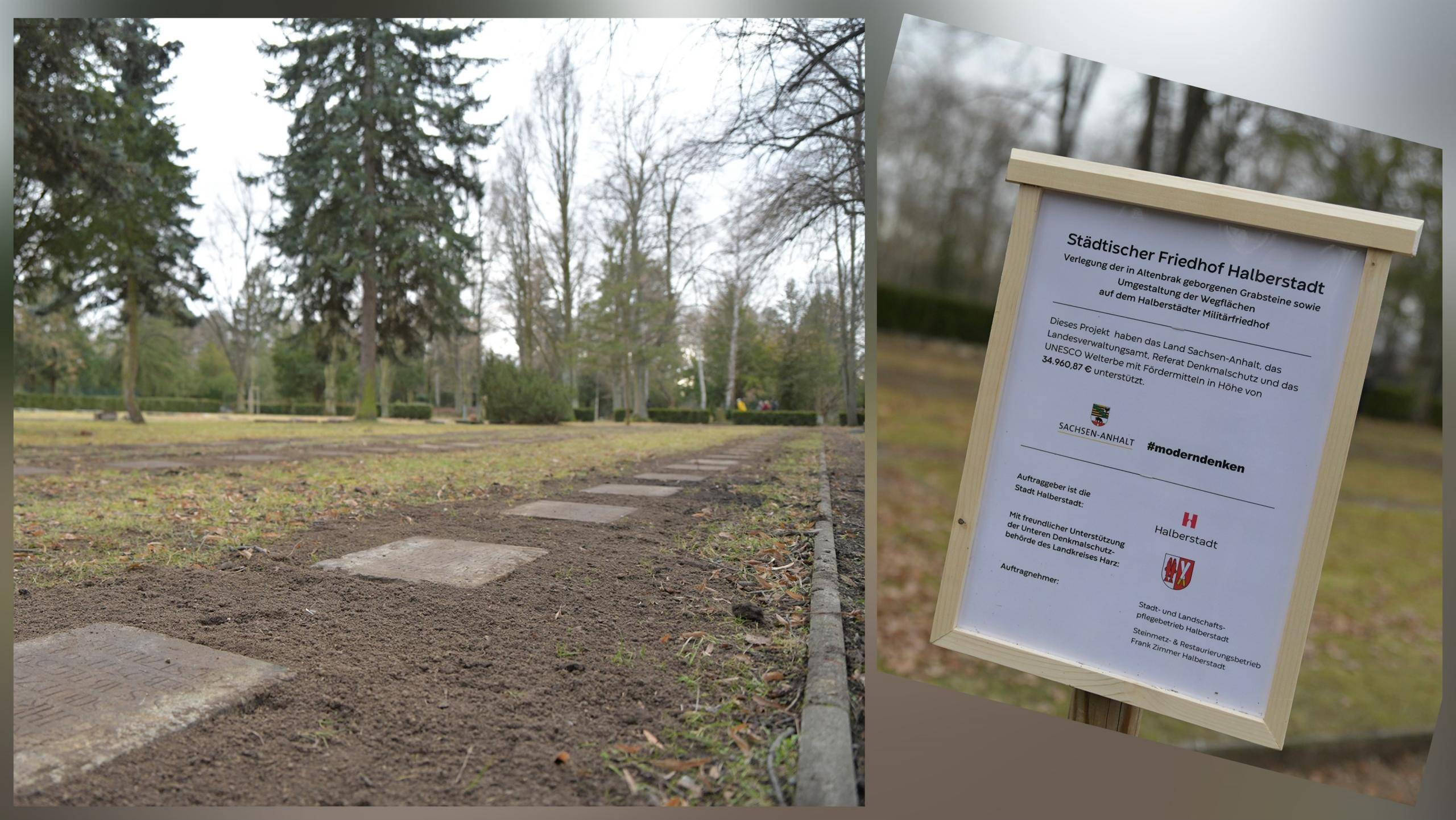 Seit Mitte Januar 2024 arbeiten der Steinmetz- & Restaurierungsbetrieb Frank Zimmer aus Halberstadt sowie der Stadt- und Landschaftspflegebetrieb an der Umsetzung eines vereinbarten Gestaltungskonzeptes. Dabei werden 27 Grabplatten auf dem Alten Militärfriedhof im Park 17 und 128 Grabplatten auf dem Neuen Militärfriedhof im Park 27 verlegt. Die schmalen Wege werden zu Rasenwegen umgestaltet. Der nächste Schritt ist der Abtransport von drei Granittafeln, um darauf die noch fehlenden 14 Namen zu ergänzen.